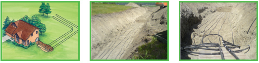Often used when adequate land surface is available. Depending on geothermal system needs and space available, pipes are placed in trenches that range in length from 100 to 400 feet.